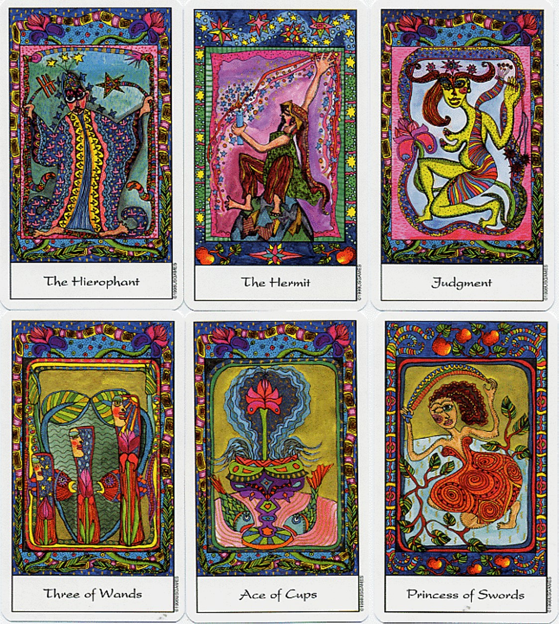 Creación de la artista Eva Maria Nitsche quien señala que las imágenes fueron creadas en un estado alterado de conciencia para conseguir una conexión arquetípica del espíritu. Producto descontinuado por la editorial impreso en Belgica. Incluye instructivo